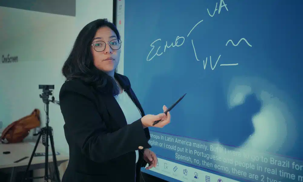 Para Jennifer, la educación del futuro —especialmente en salud— debe ser orientada a resolver problemas y apoyarse en tecnologías emergentes como la inteligencia artificial. En ese camino, las pizarras interactivas y la simulación clínica son claves: permiten practicar decisiones complejas en un entorno seguro, mejorar tiempos de respuesta y construir criterios clínicos de forma colaborativa.